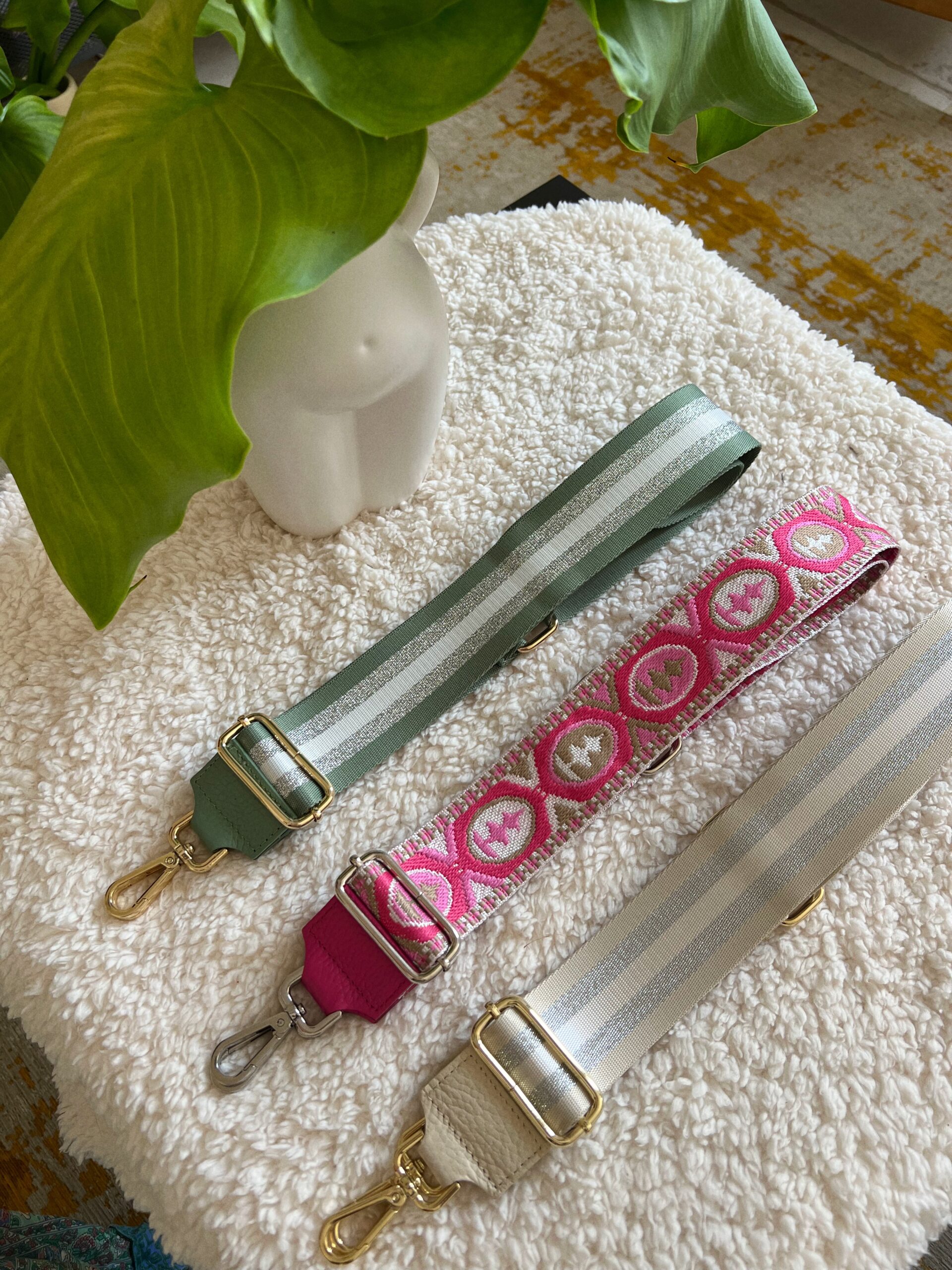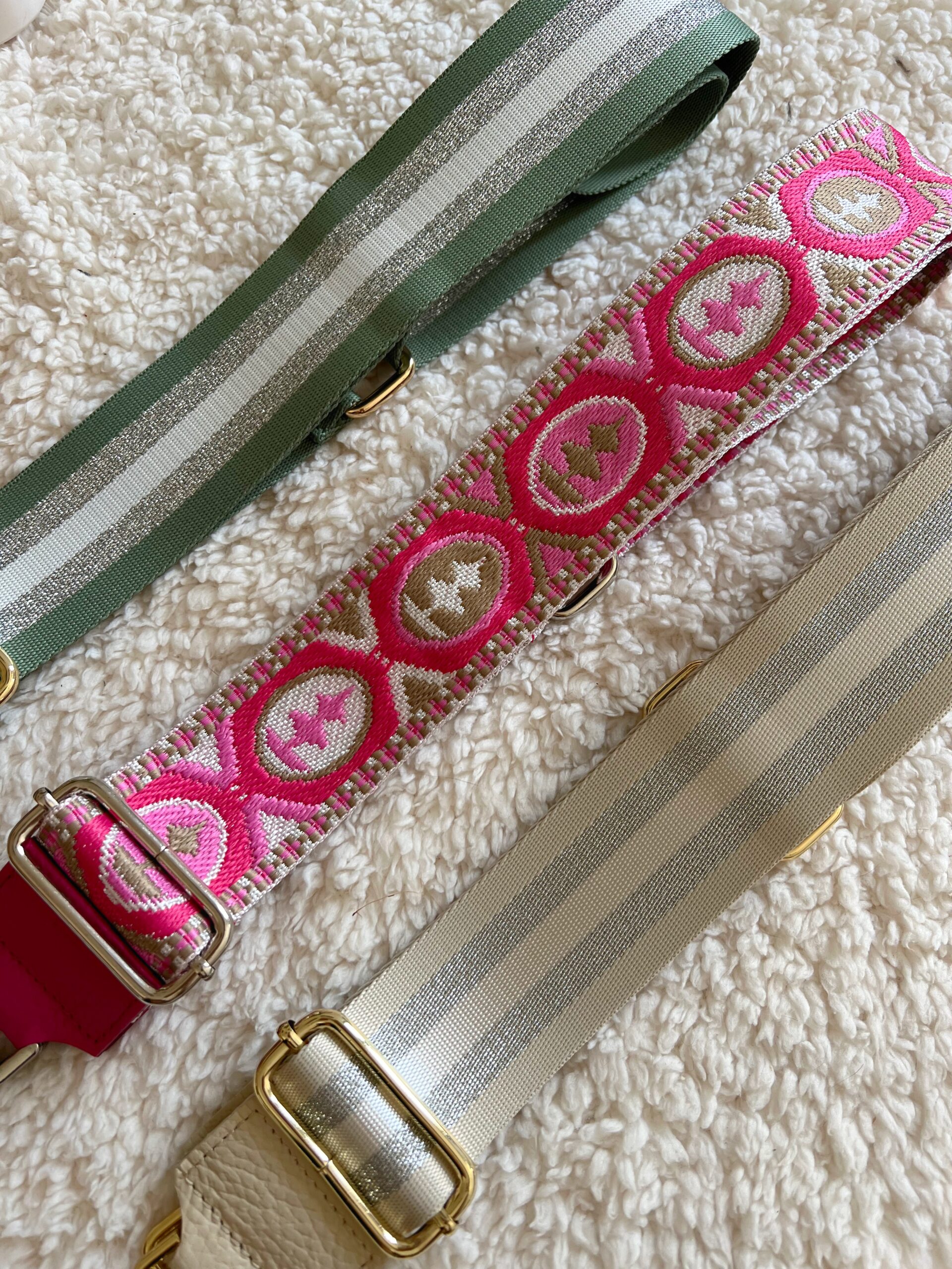 démarquez-vous en changeant de bandoulière à votre guise avec nos modèles colorés et originaux votre sac ne ressemblera pas à tout le monde! Rose, kaki pailleté ou écru pailleté