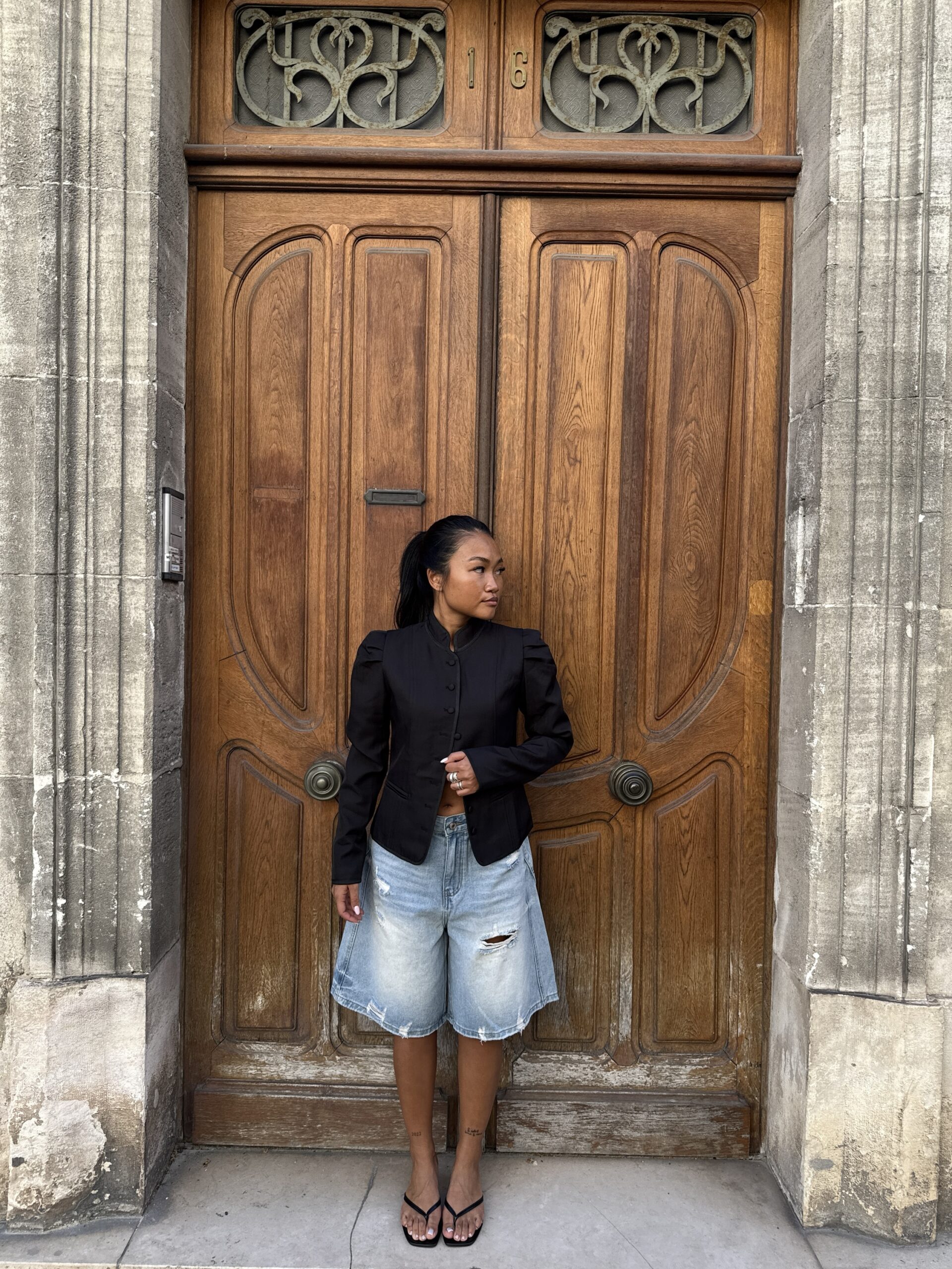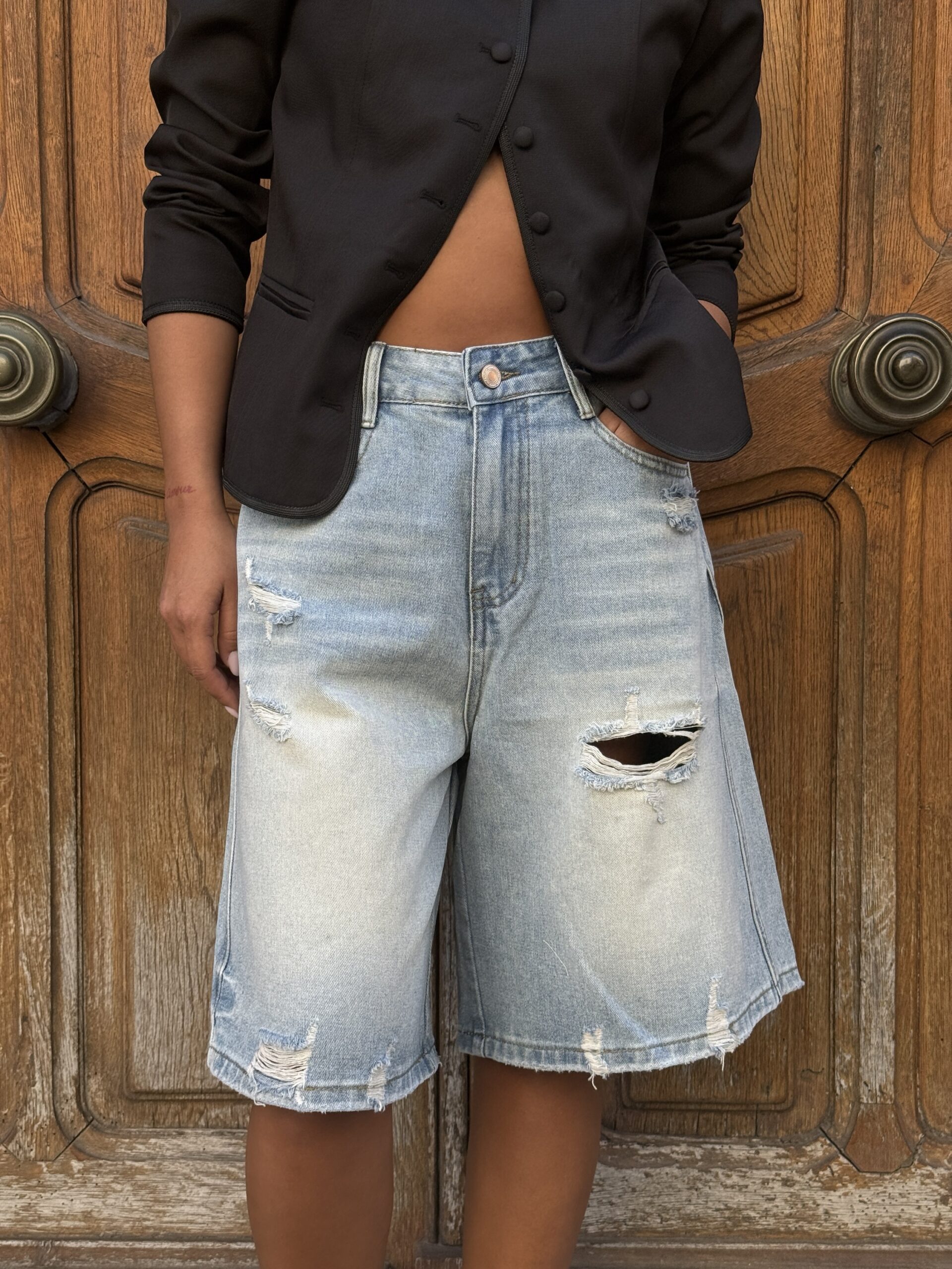 Bermuda long en jean déchiré PAULE