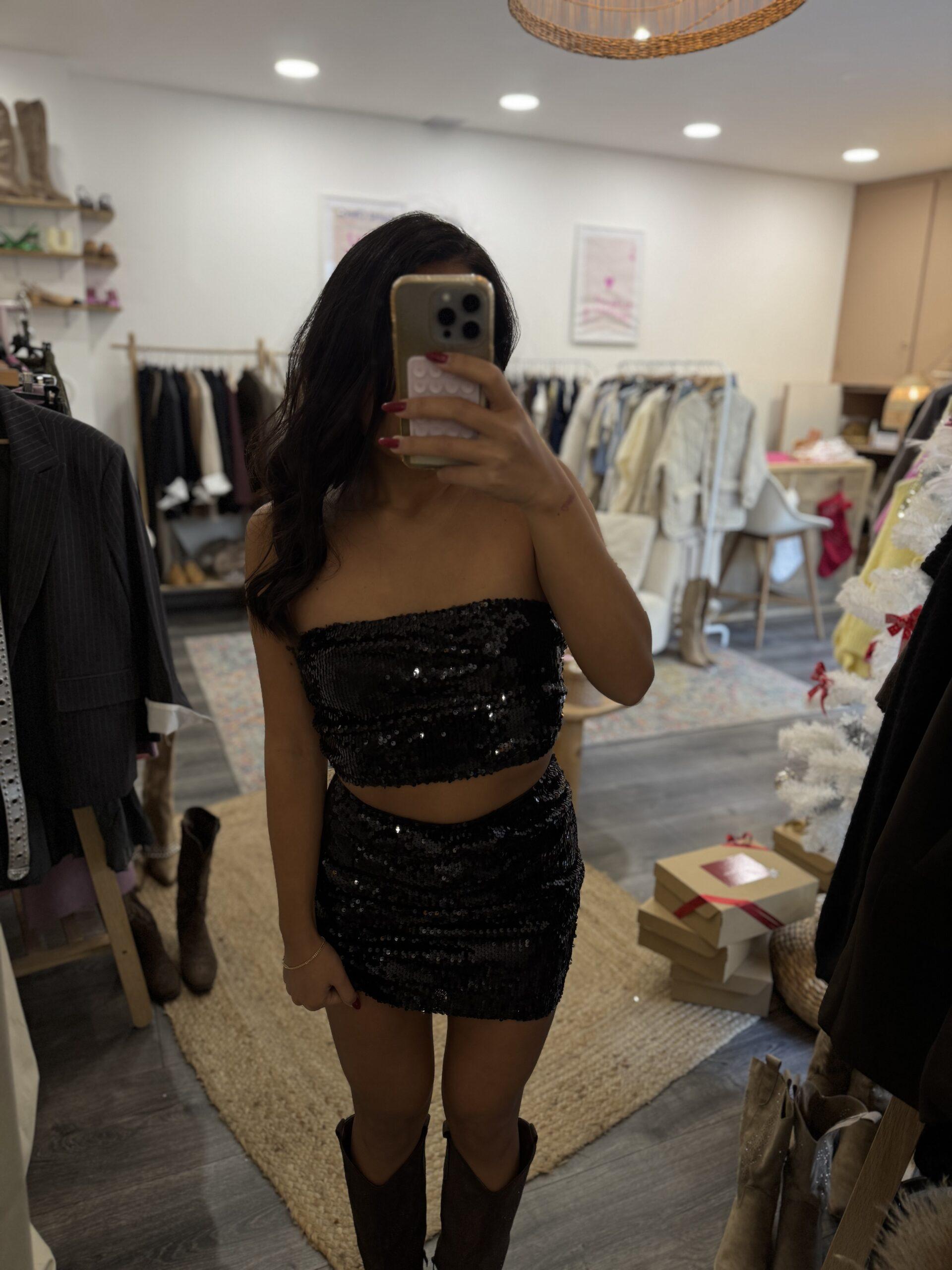 Ensemble sequin bustier/jupe ALMA (plusieurs coloris)