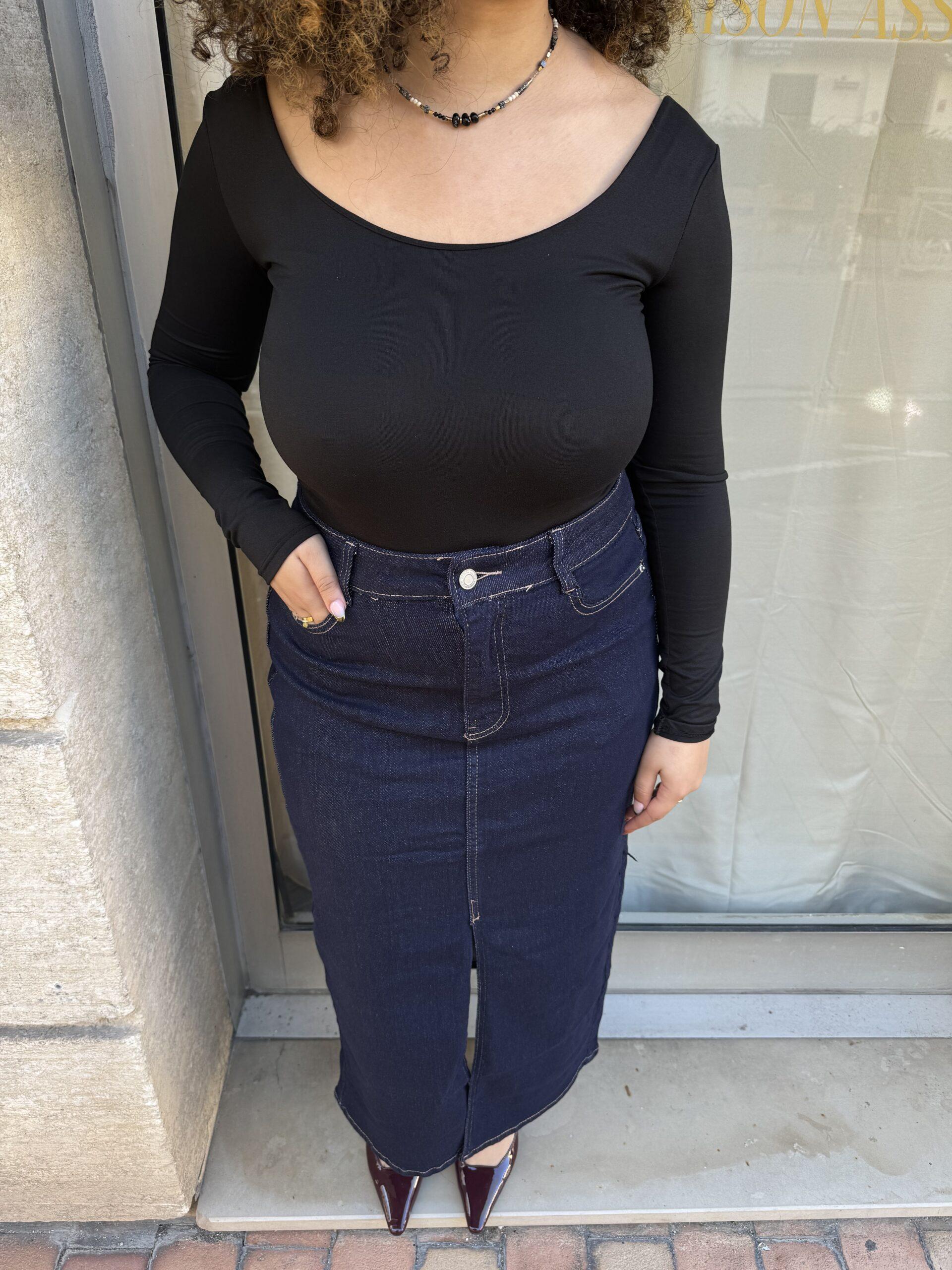 Jupe longue fendue en jean ODETTE (plusieurs coloris)