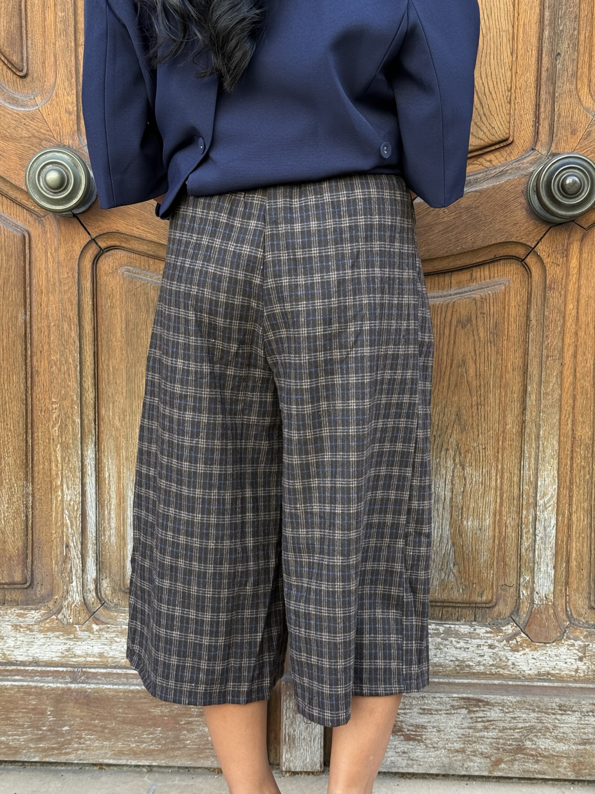 • Couleurs : marron, carreaux bleus et beige