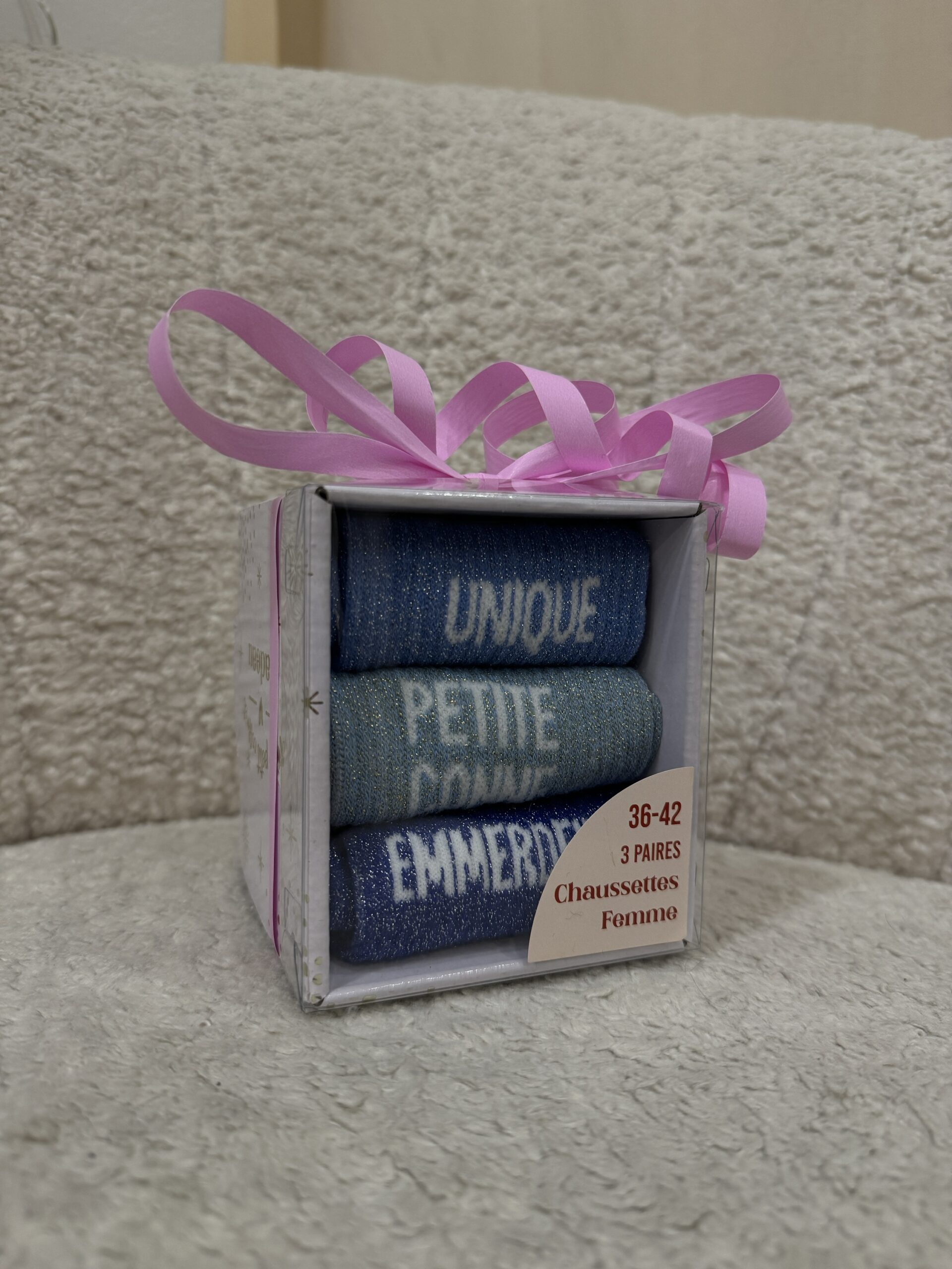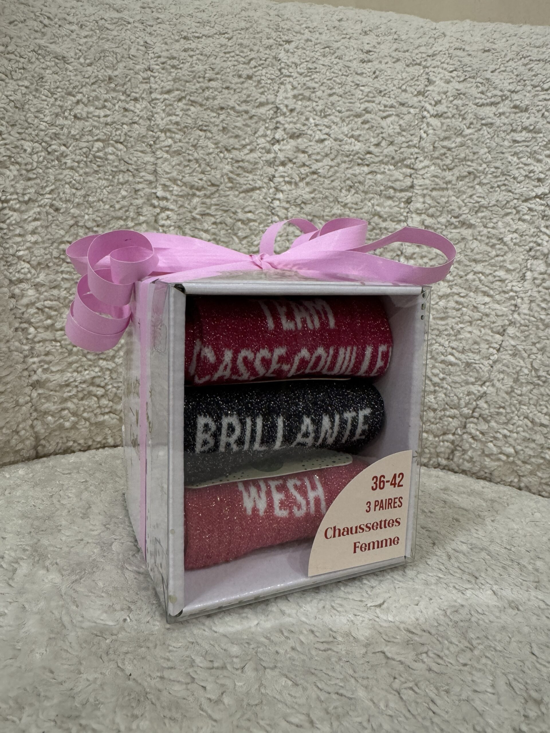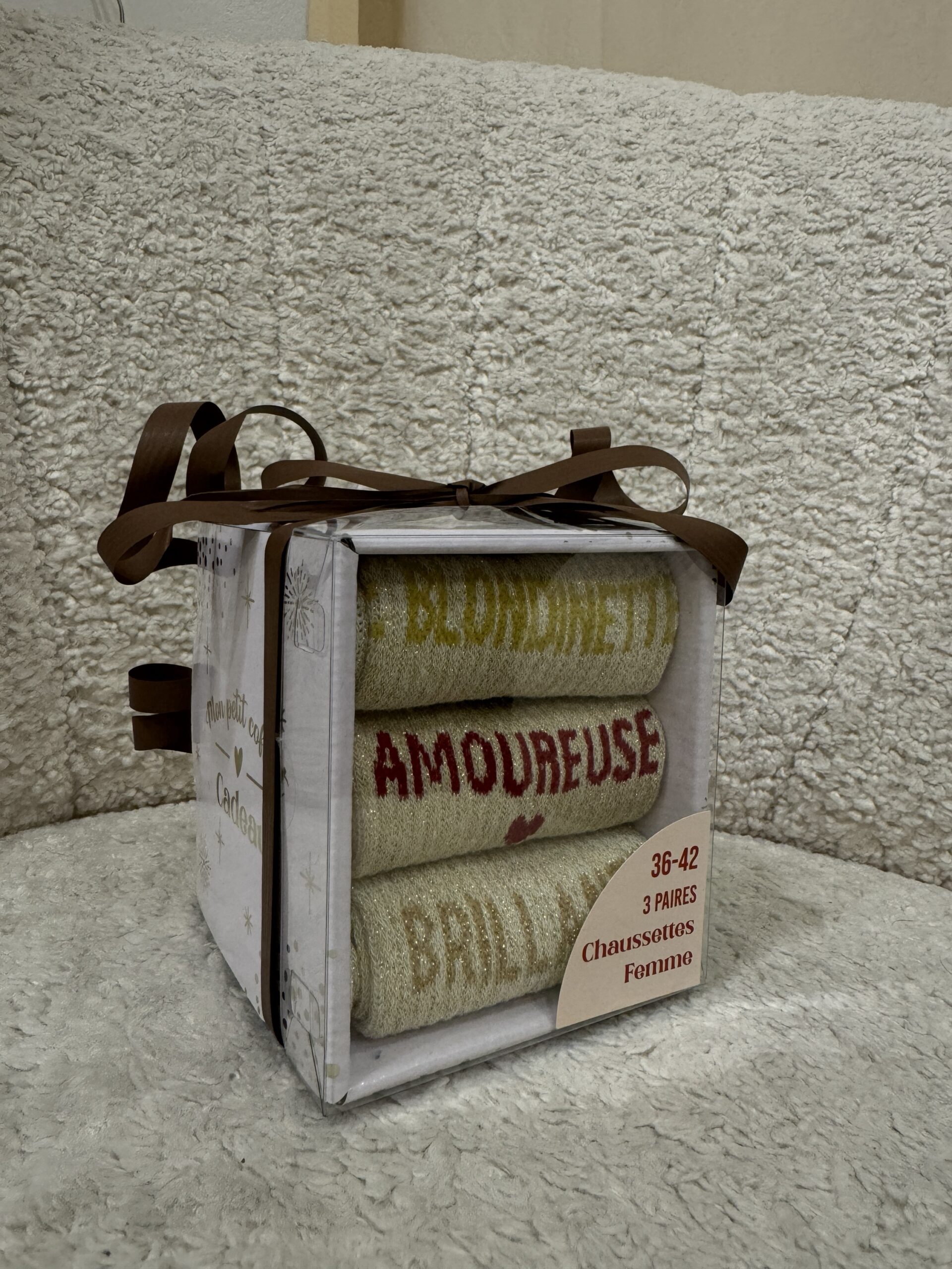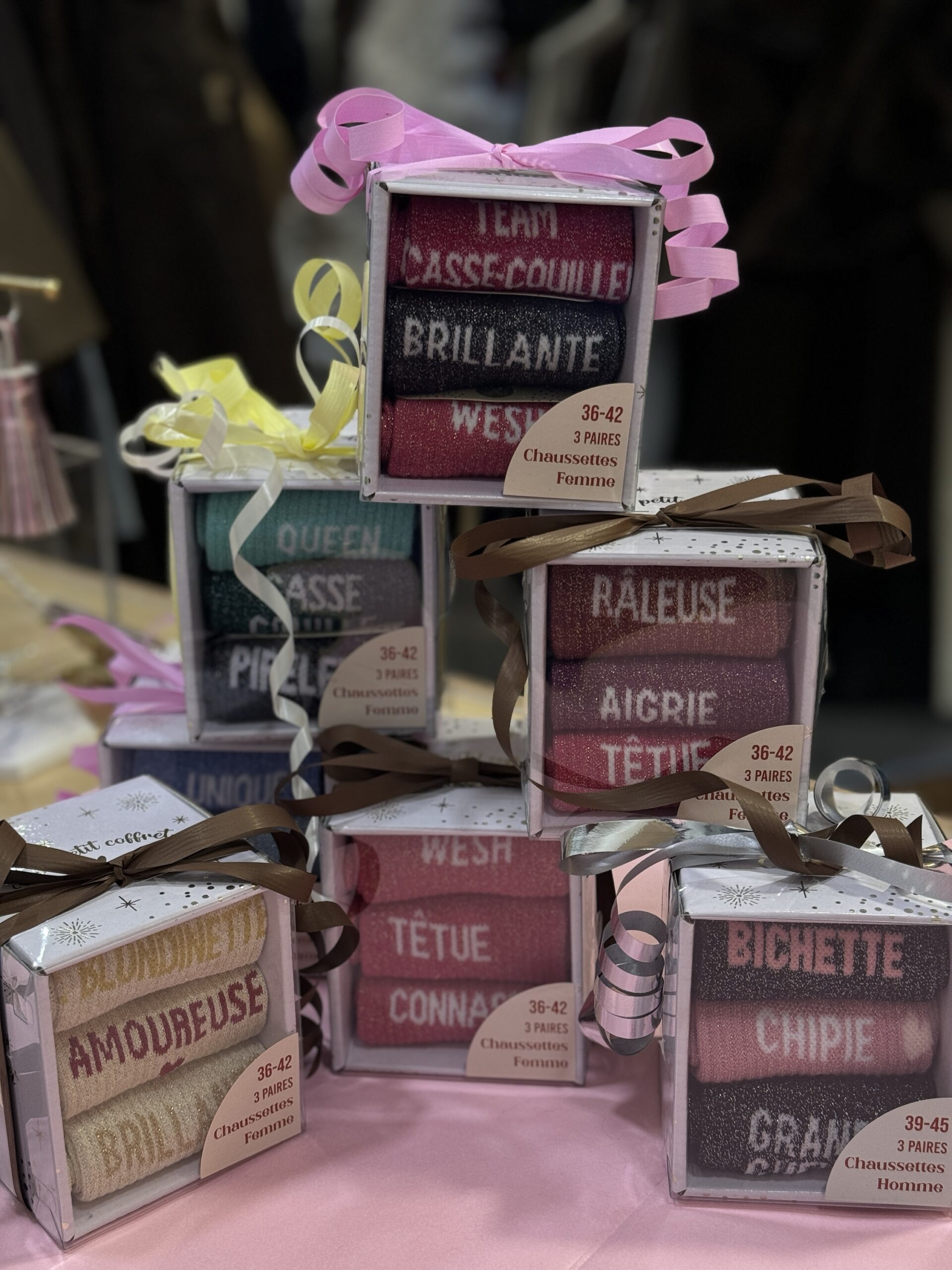 • Boxes de 3 chaussettes à paillettes avec message pour Elle et pour Lui ! Une super idée de cadeau à petit prix pour les fêtes