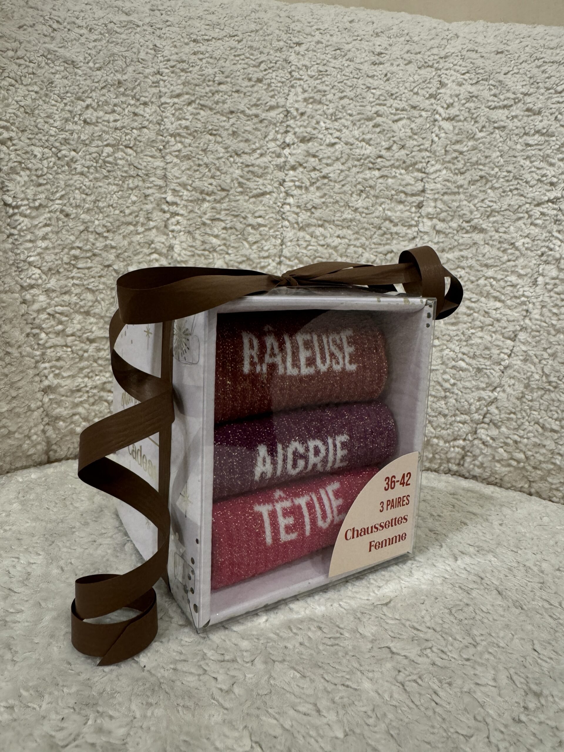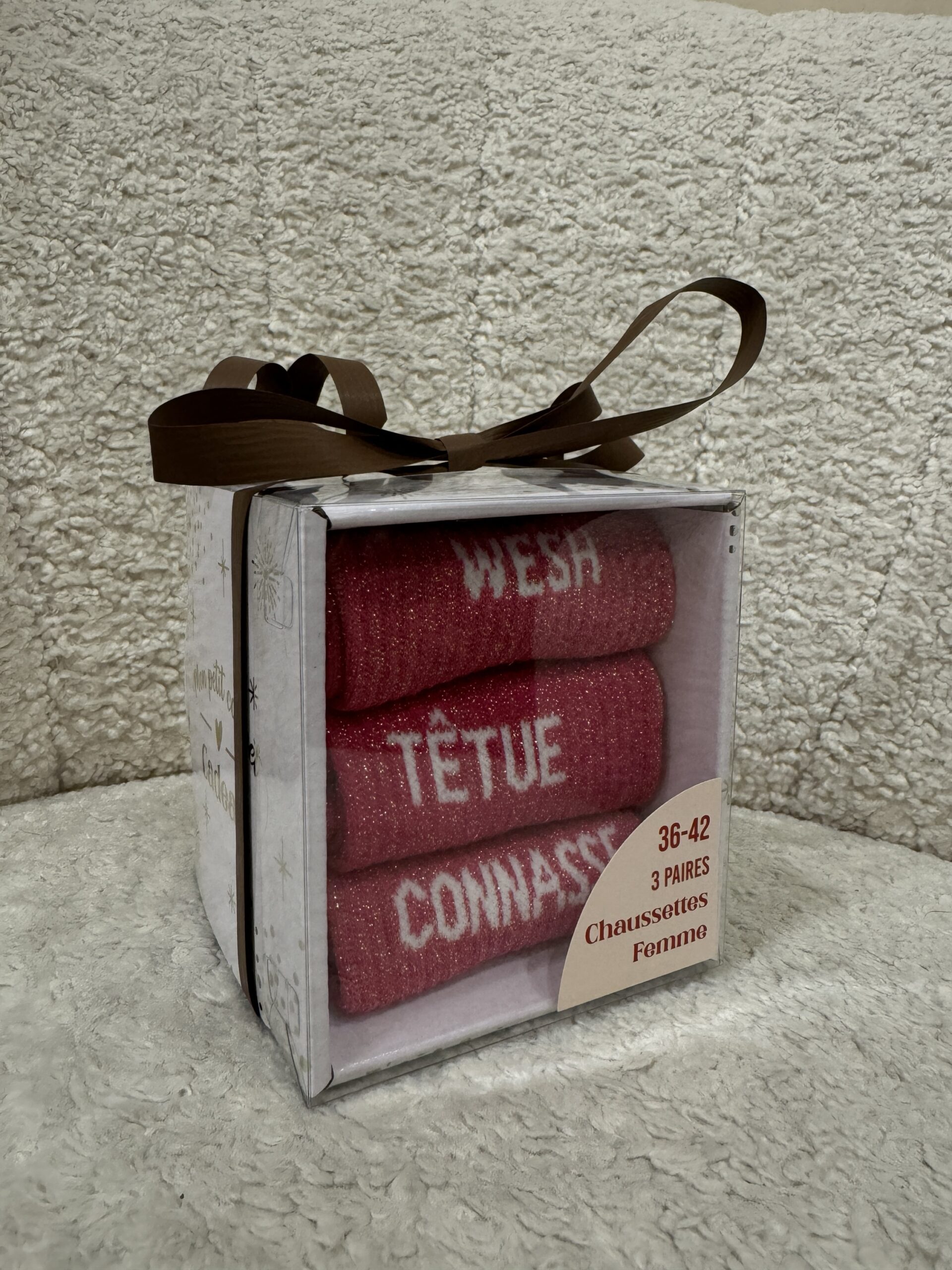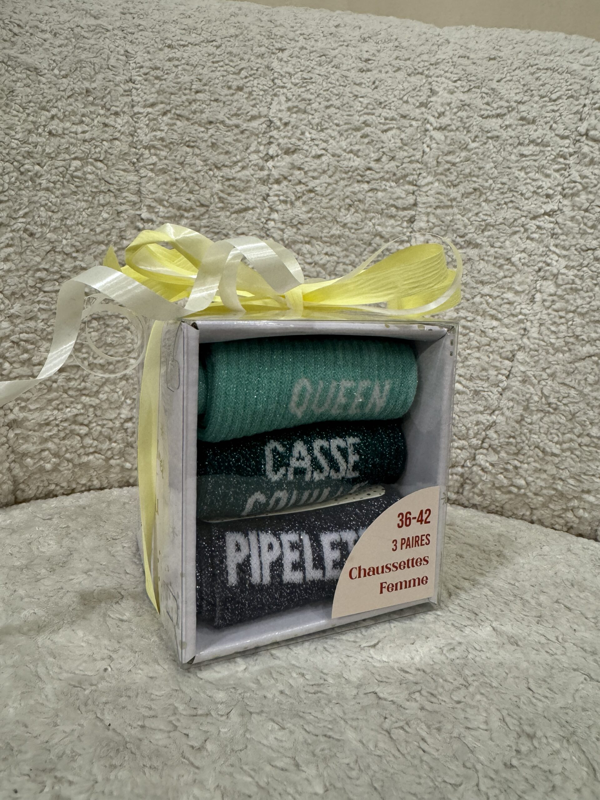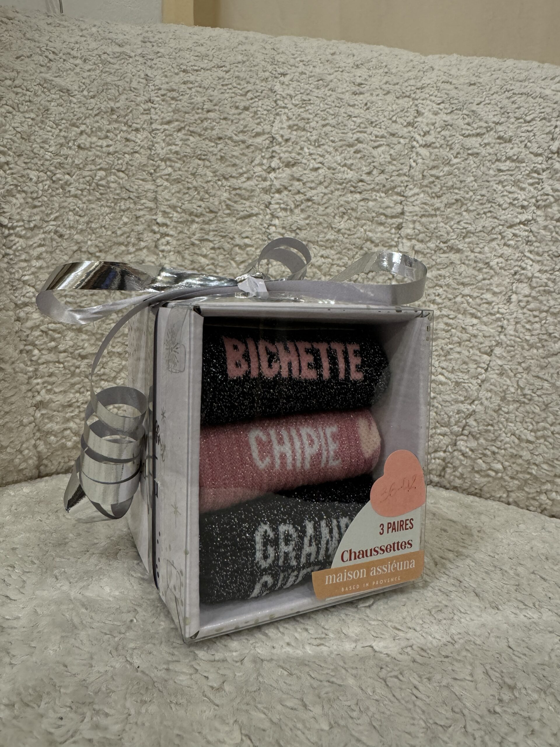 • Boxes de 3 chaussettes à paillettes avec message pour Elle et pour Lui ! Une super idée de cadeau à petit prix pour les fêtes