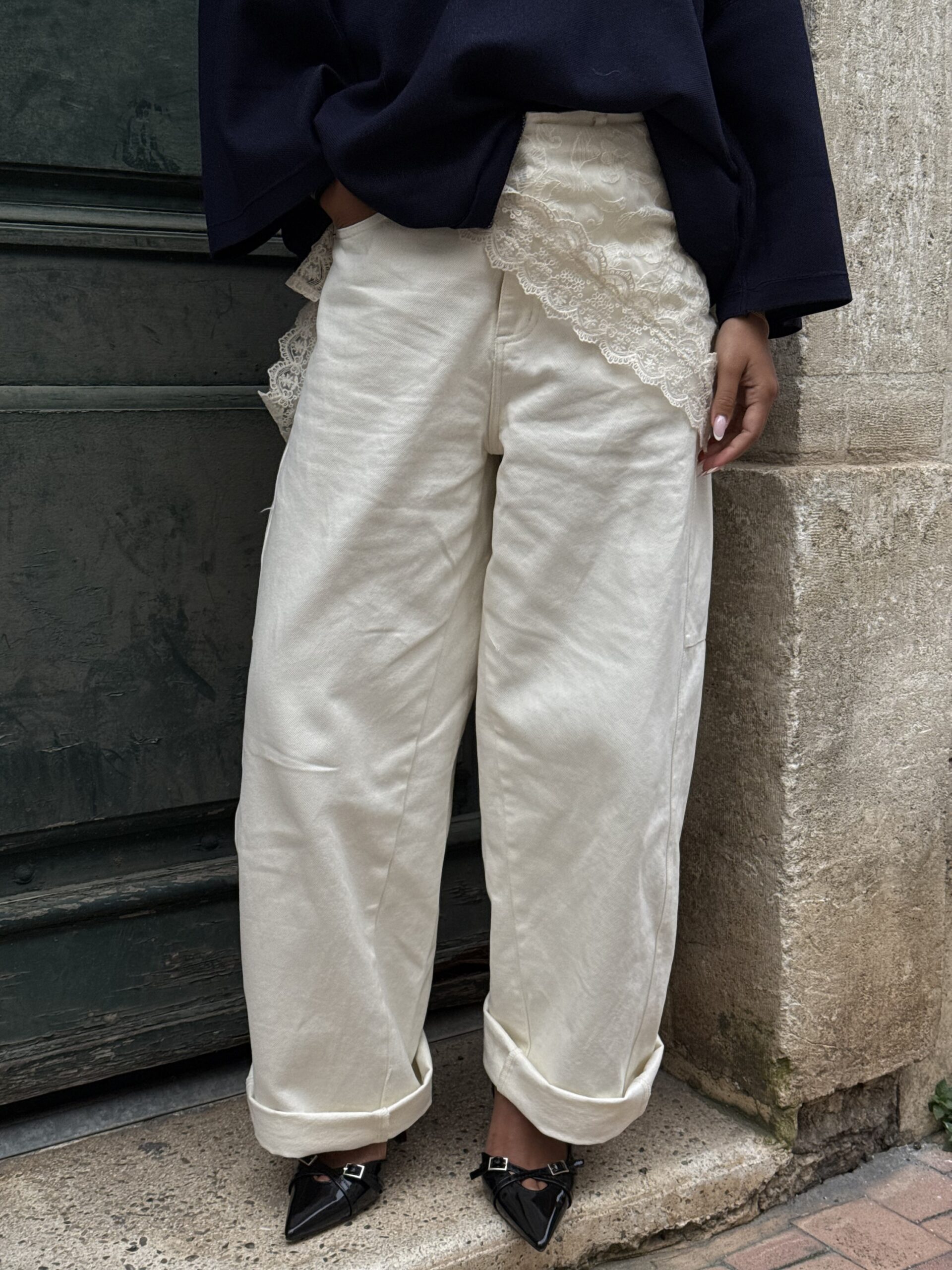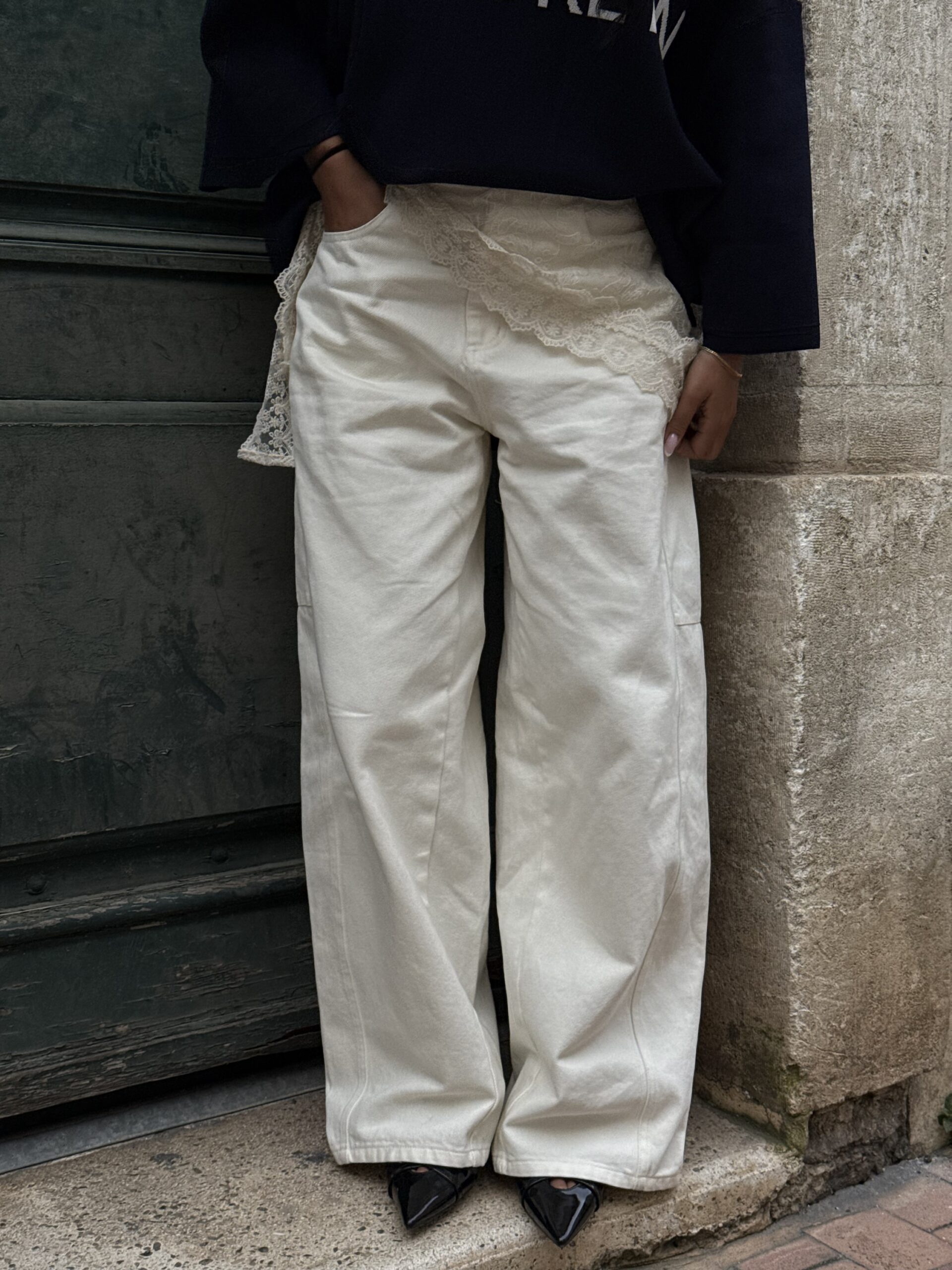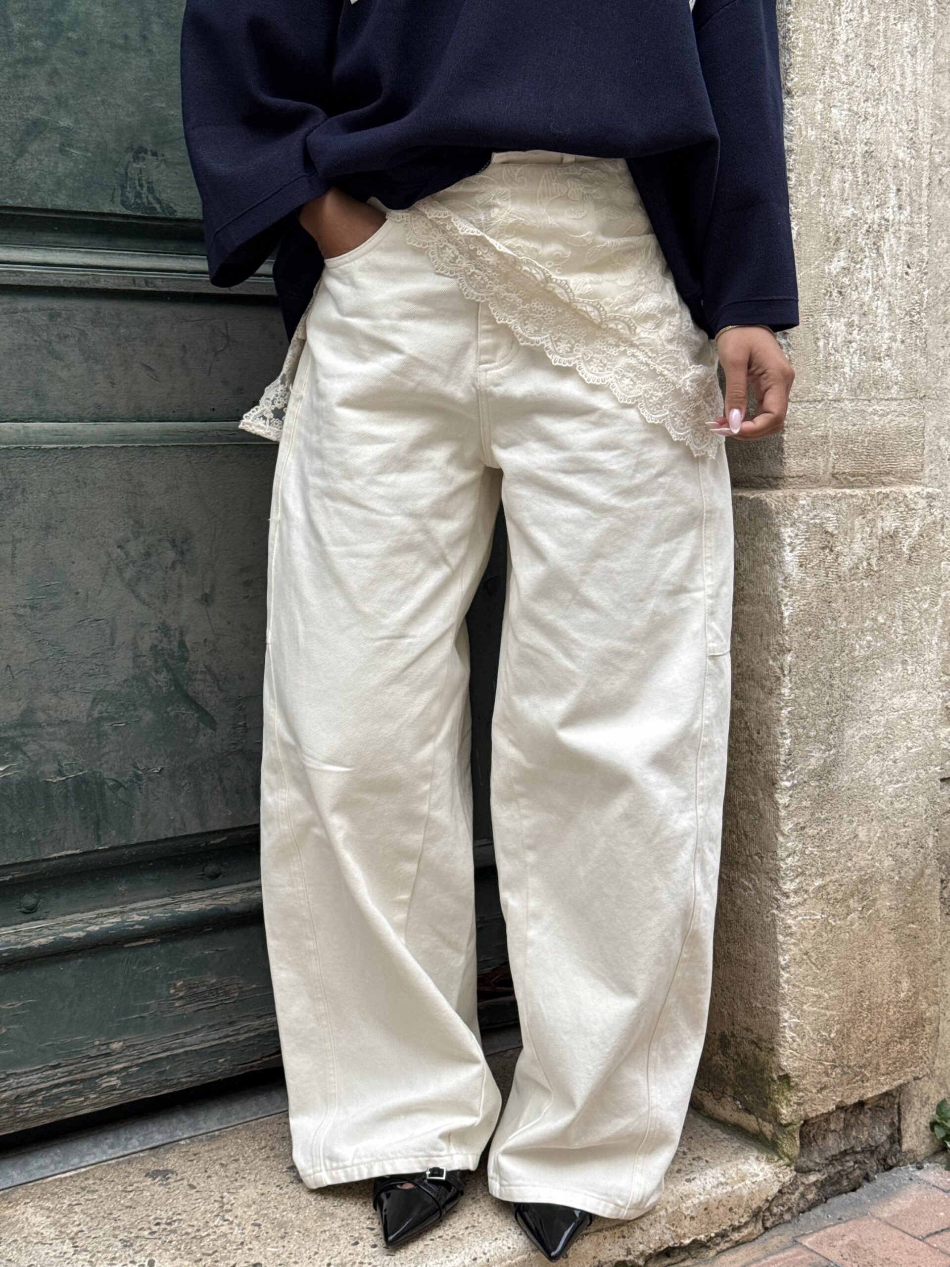 Apportez légèreté et style à vos tenues avec ce jean blanc écru coupe ballon pour femme. Sa coupe ample assure un confort optimal, tandis que sa teinte écru lui confère une élégance naturelle et facile à porter.