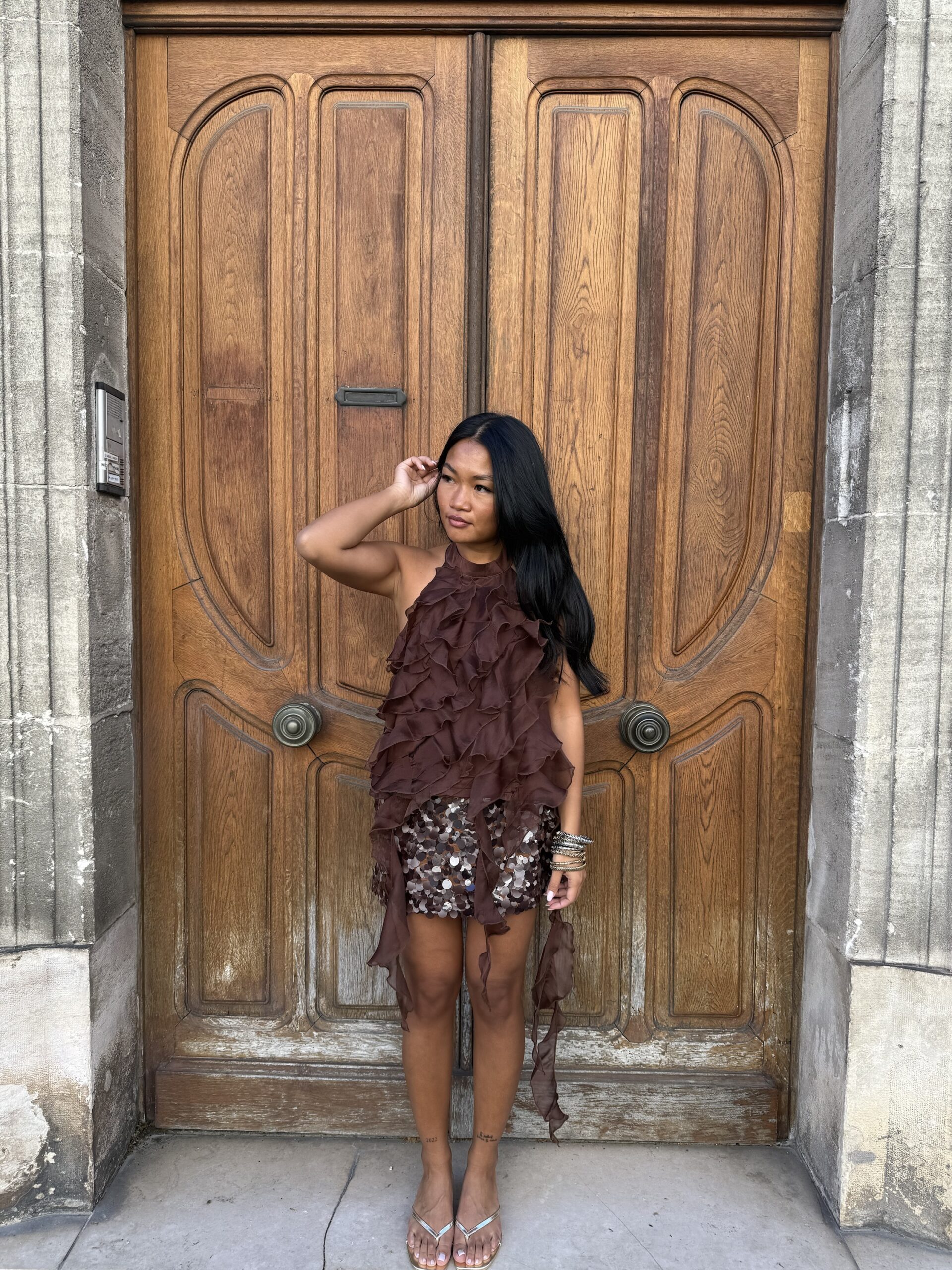 - Détails : Doublure pour plus de confort, sequins scintillants pour un look festif