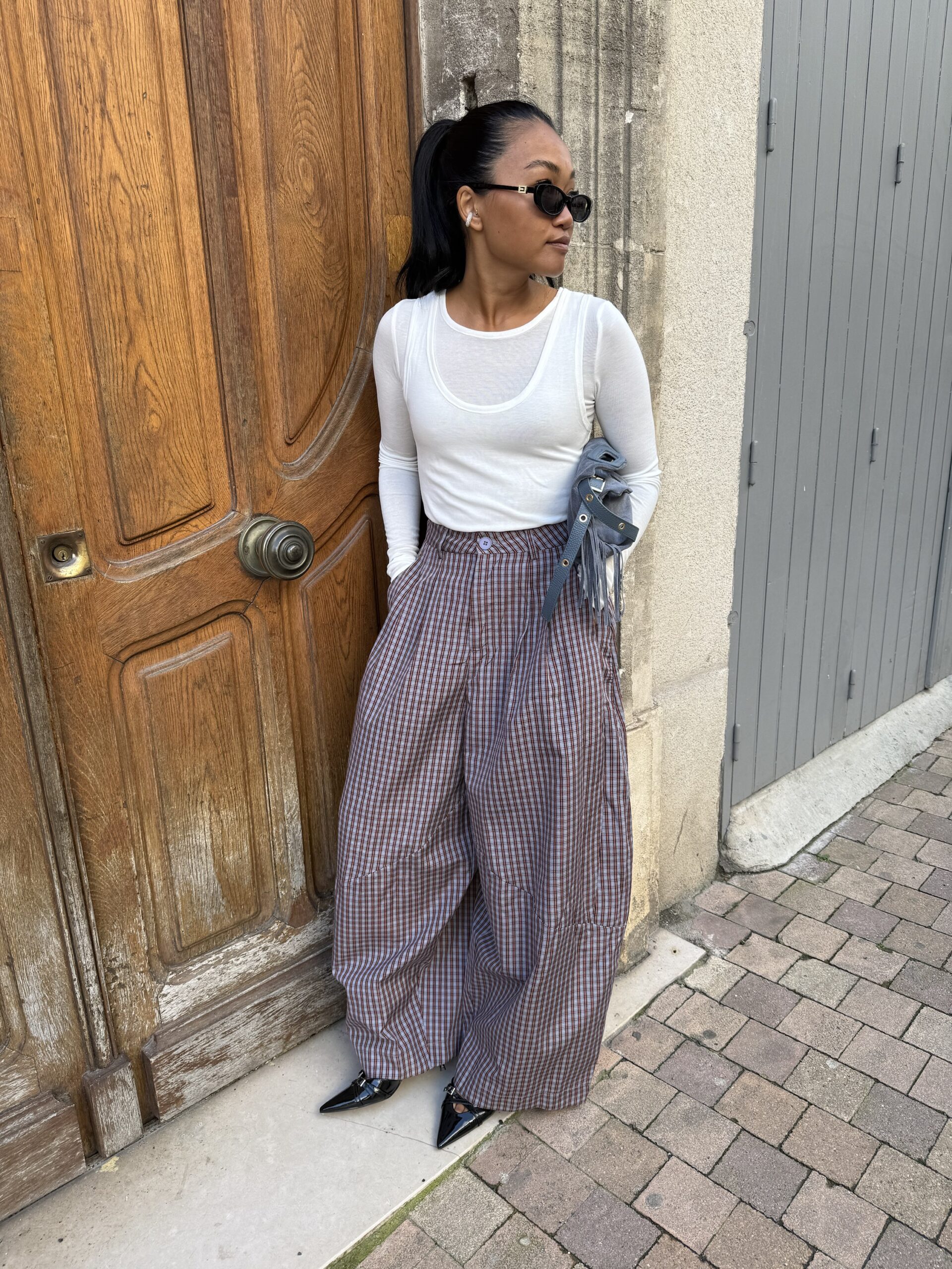 Pantalon ballon à carreaux AHLYA