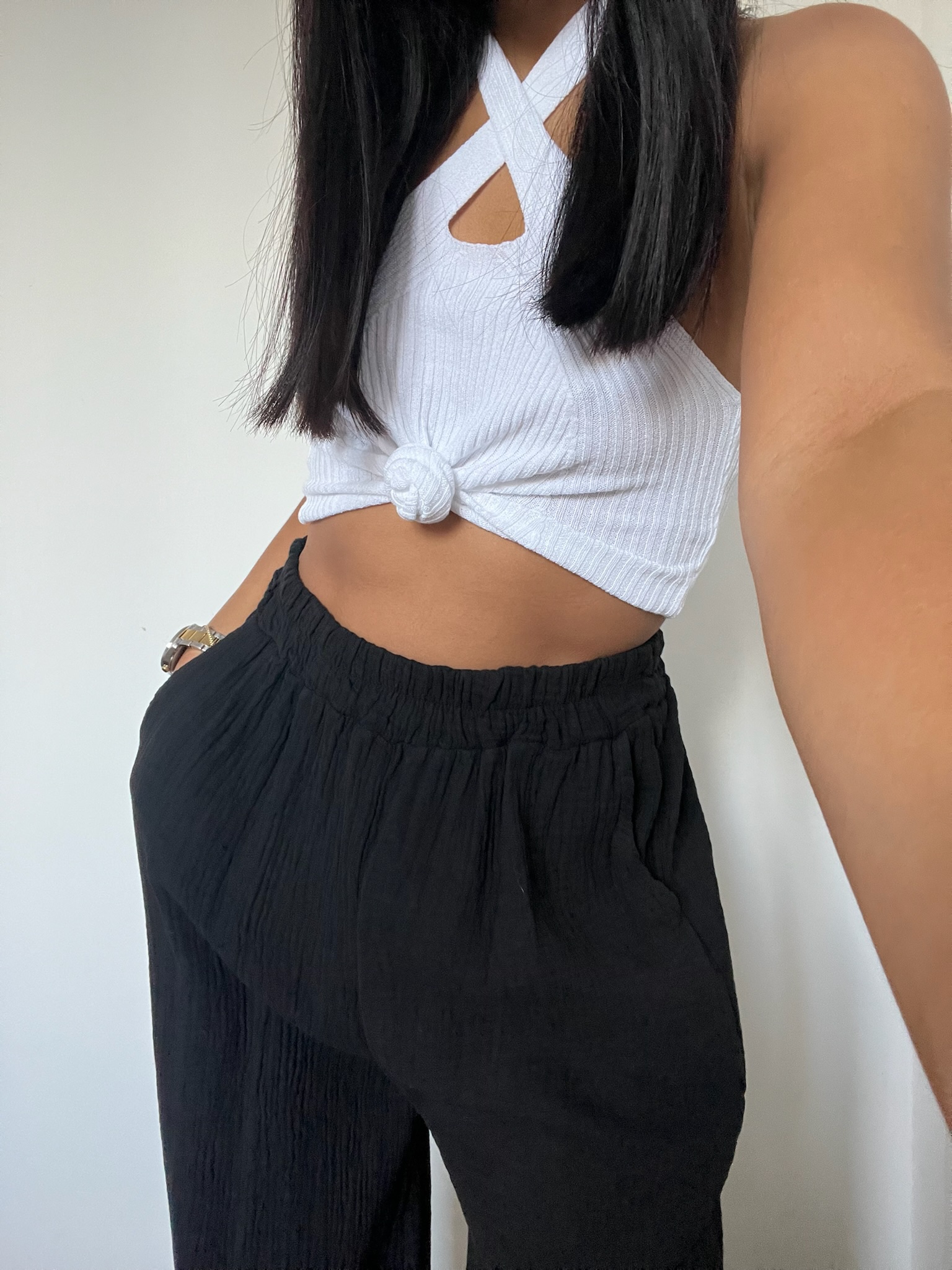 Nos fameux incontournables pantalon en gaze de coton font de nouveau leur apparition dans de nouveau coloris pour la saison, on est toujours aussi fan! (D’autres coloris devrait arriver au cours de la saison)