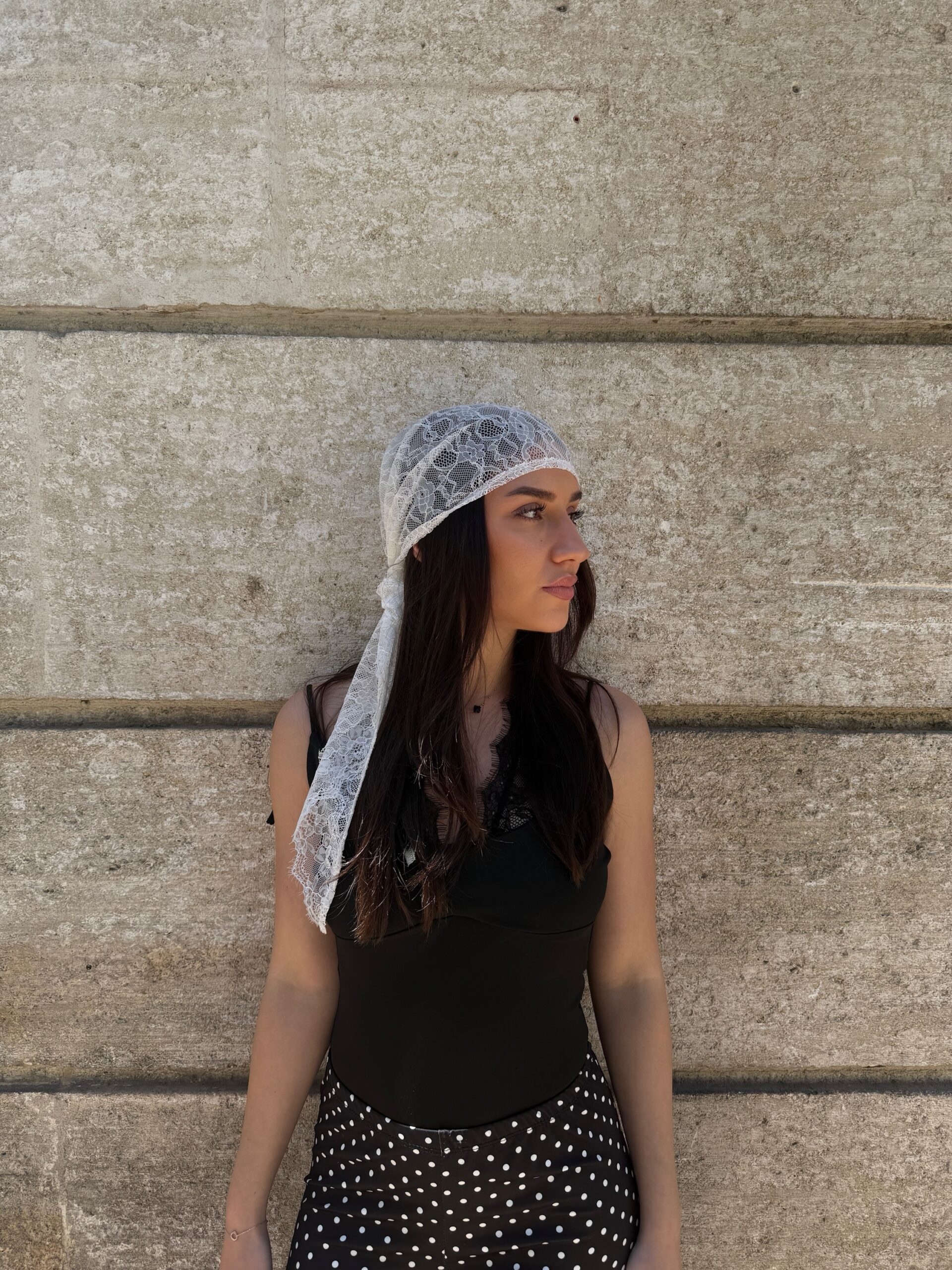 Dans un style casual chic, le foulard à nouer en dentelle s’associe parfaitement à un jean taille haute et un débardeur simple. Pour un look plus habillé, il peut compléter une jupe élégante ou un pantalon fluide. Sa capacité à transformer une tenue en fait un indispensable mode de la saison.
