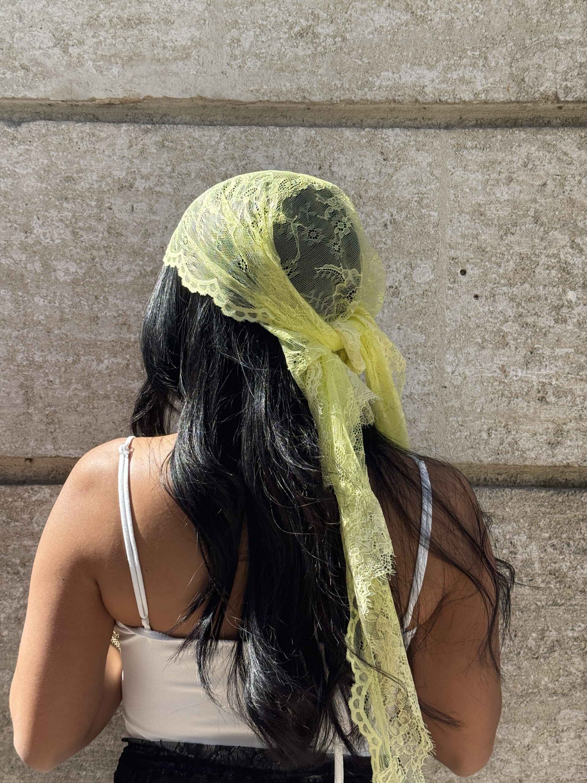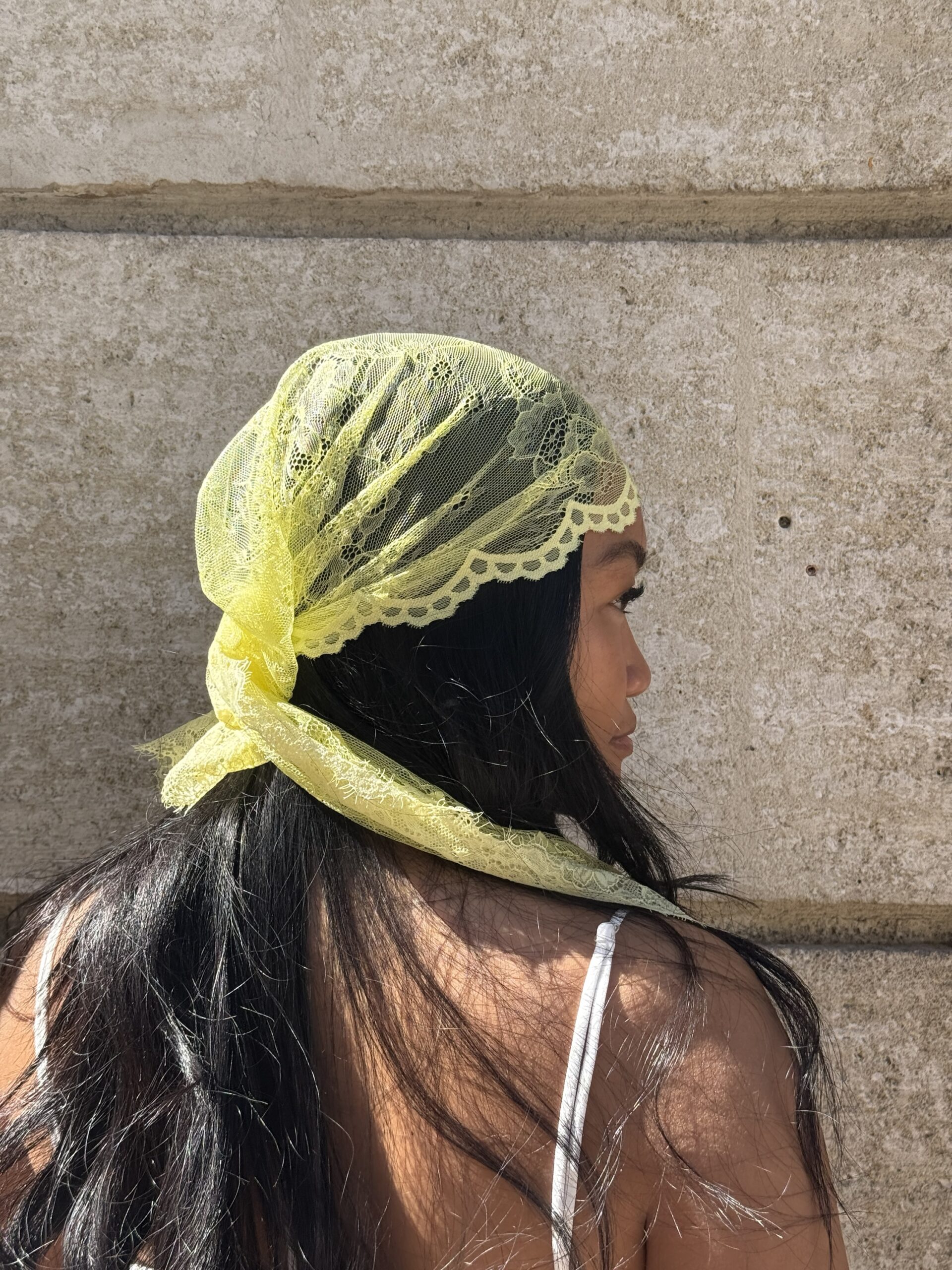 Décliné en jaune, noir, blanc et taupe, il s’adapte facilement à tous les styles, du plus minimaliste au plus audacieux. Le foulard à nouer en dentelle est idéal pour transformer une tenue simple en look travaillé et tendance en quelques secondes.