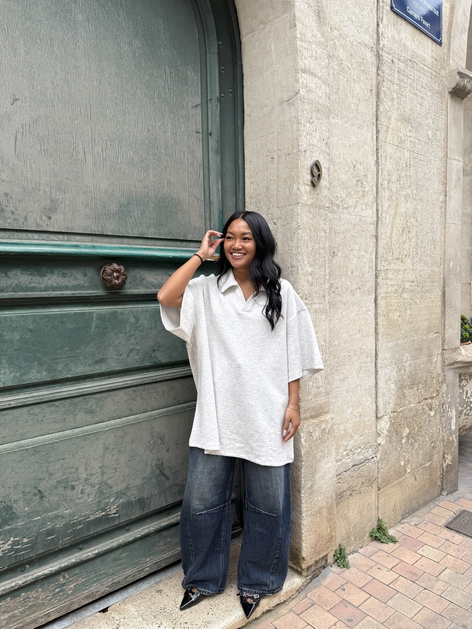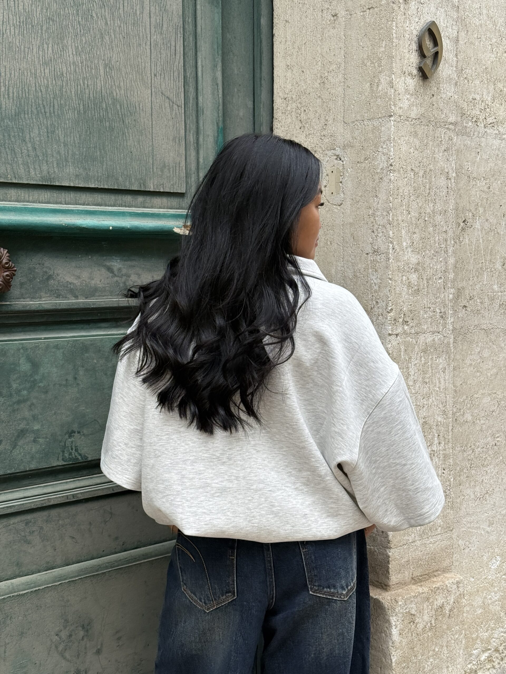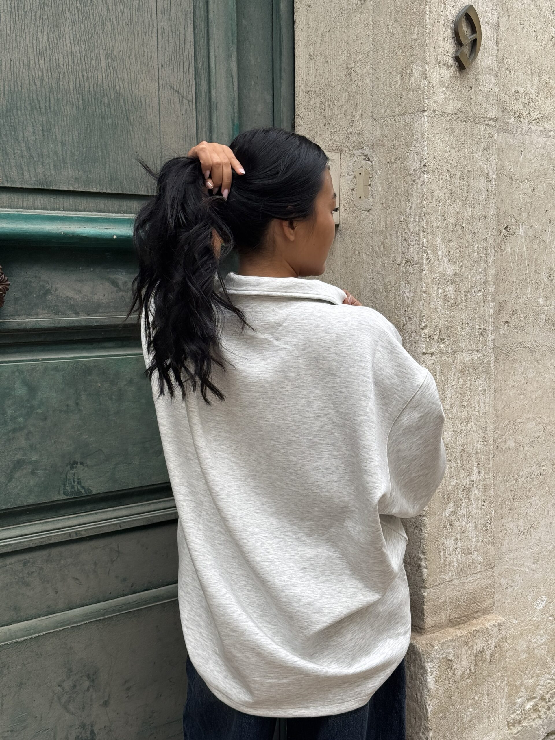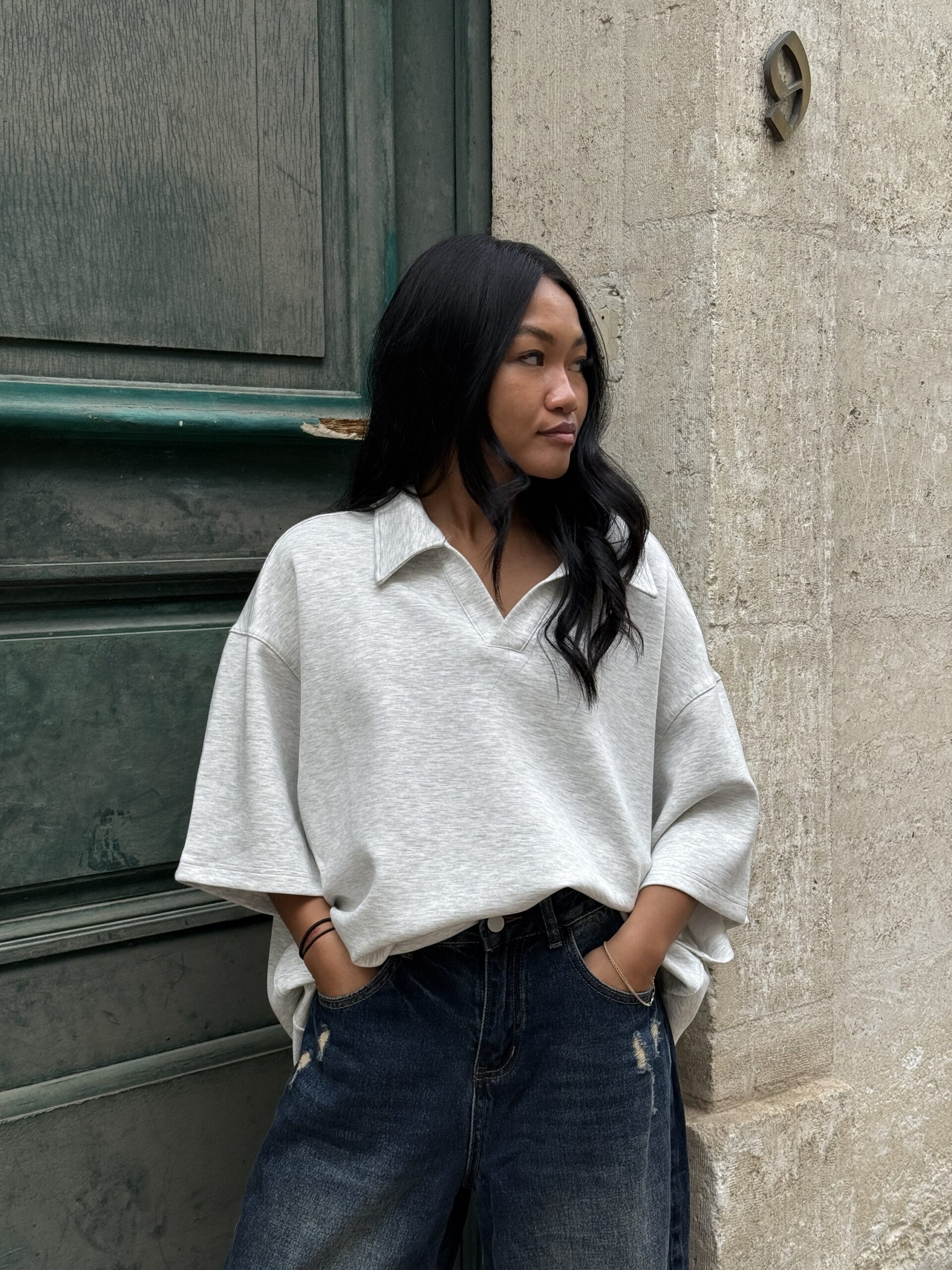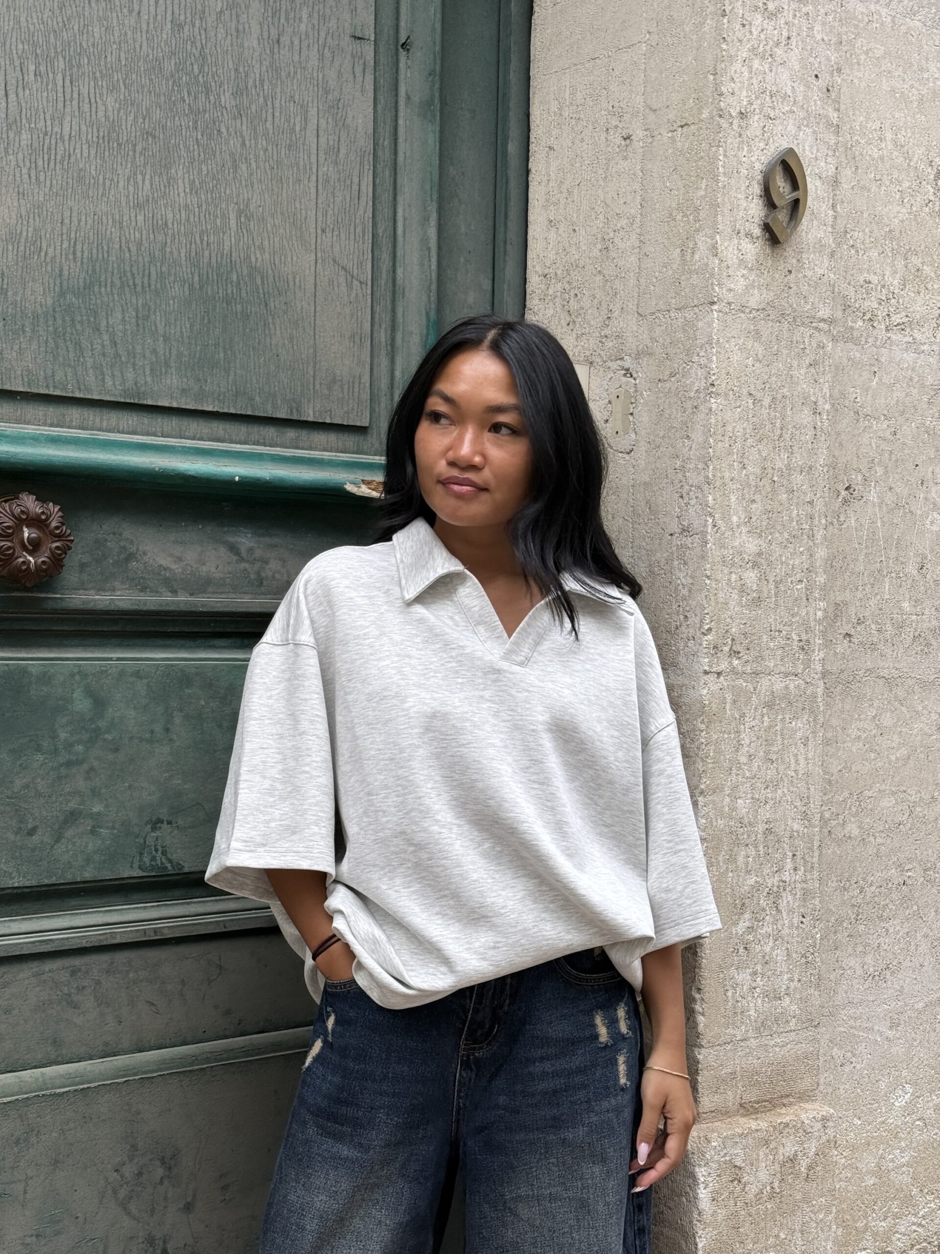 Alliez confort et style avec ce pull style polo gris clair légèrement chiné. Sa coupe très large et sa matière ultra douce (50 % polyester, 50 % viscose) offrent un confort optimal pour vos journées automne-hiver. Taille unique, il se porte facilement avec un jean, un pantalon casual ou une jupe pour un look sporty décontracté et moderne.