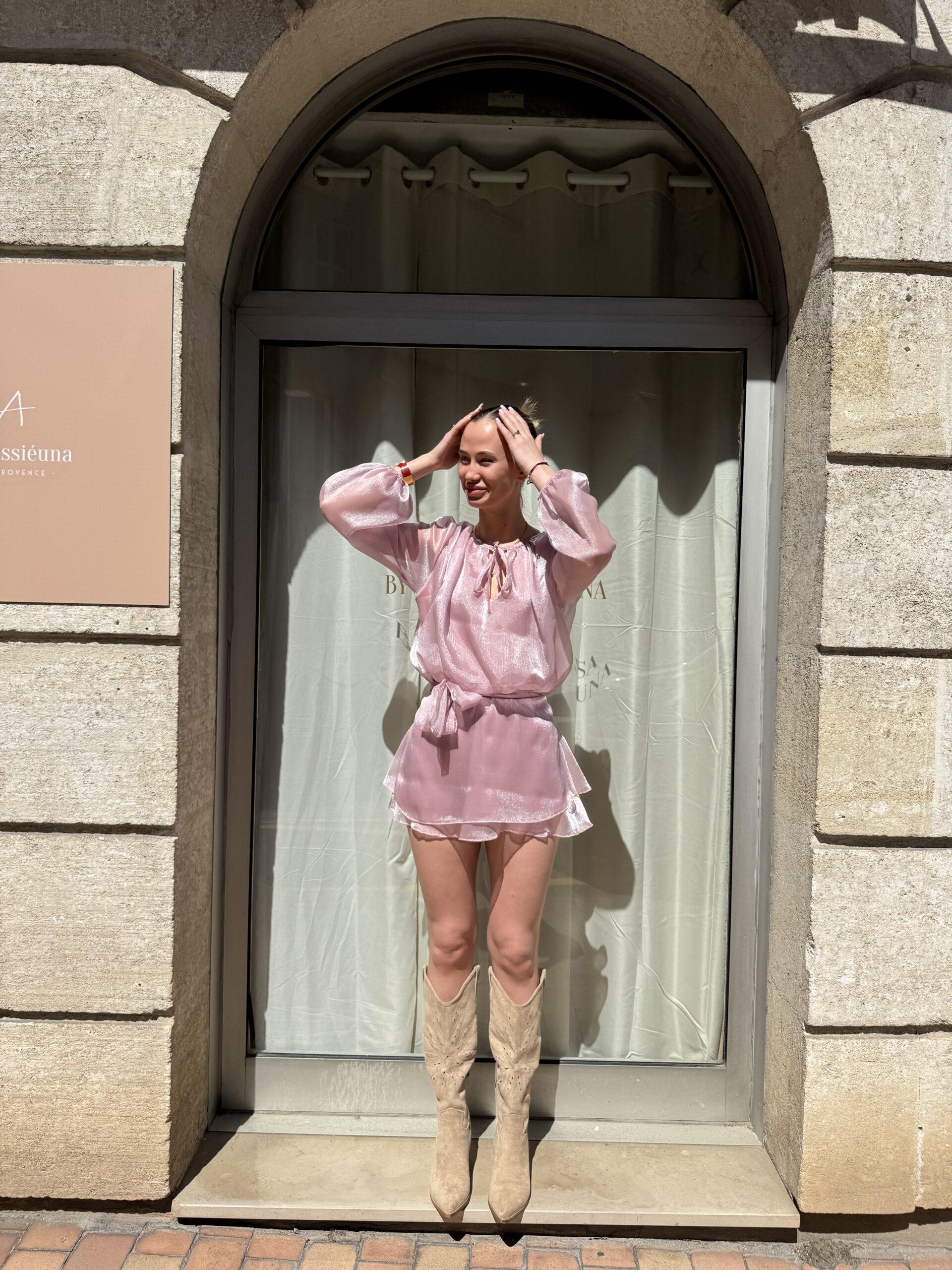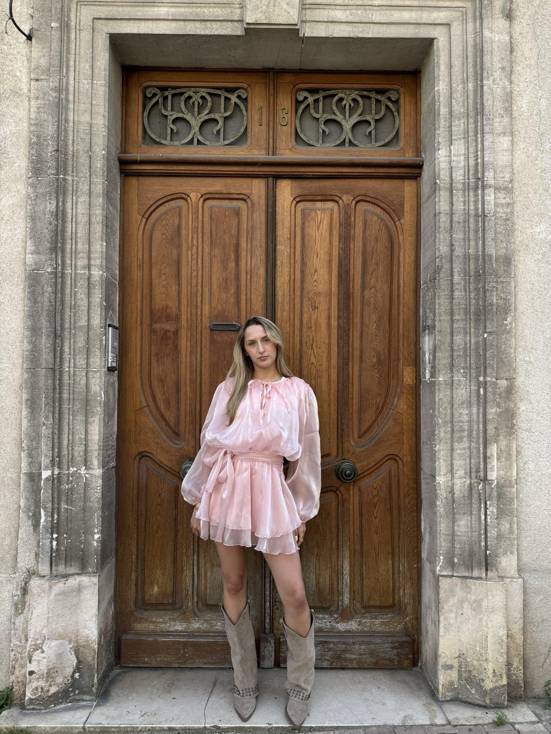 • Anastasia et Océane mesure 1m80 et 1m70 et porte une taille unique (vieux rose)