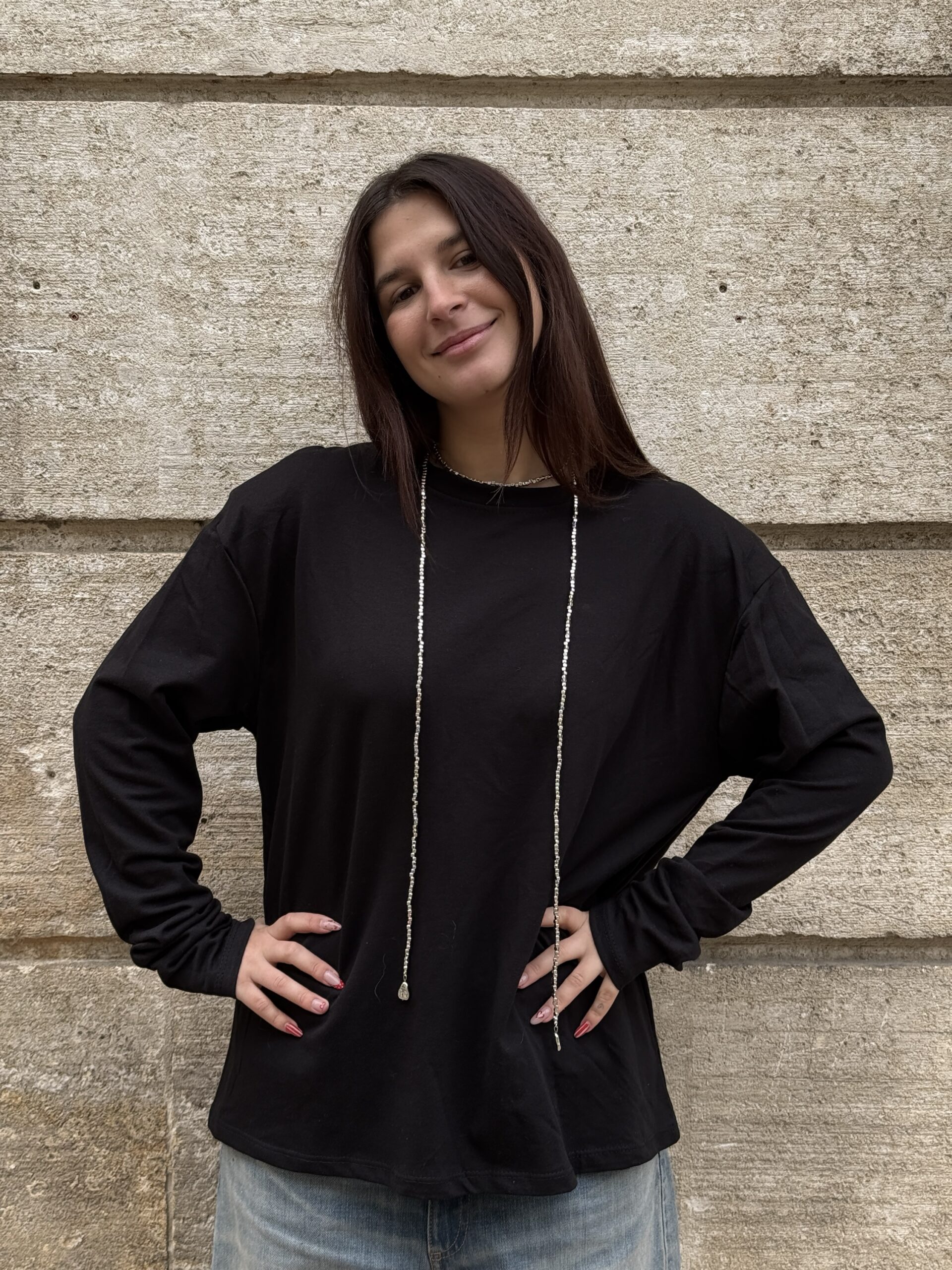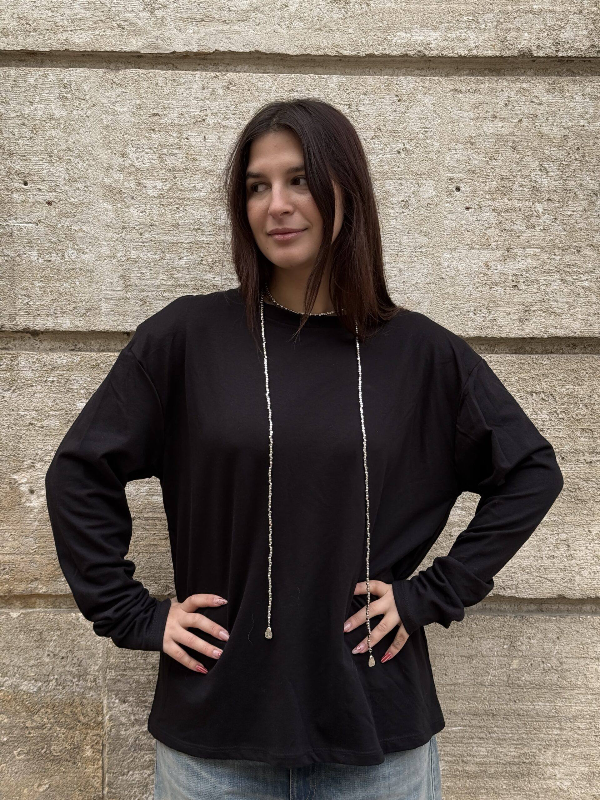 Apportez une touche moderne à vos tenues avec ce t-shirt manches longues à épaulettes. Confectionné en coton avec une touche d’élasthanne, il offre confort, douceur et une légère élasticité pour un porté agréable.