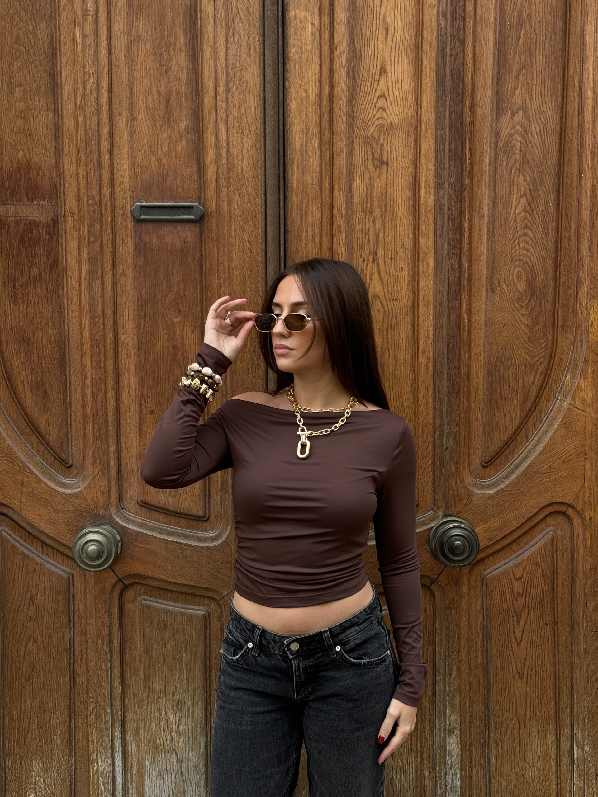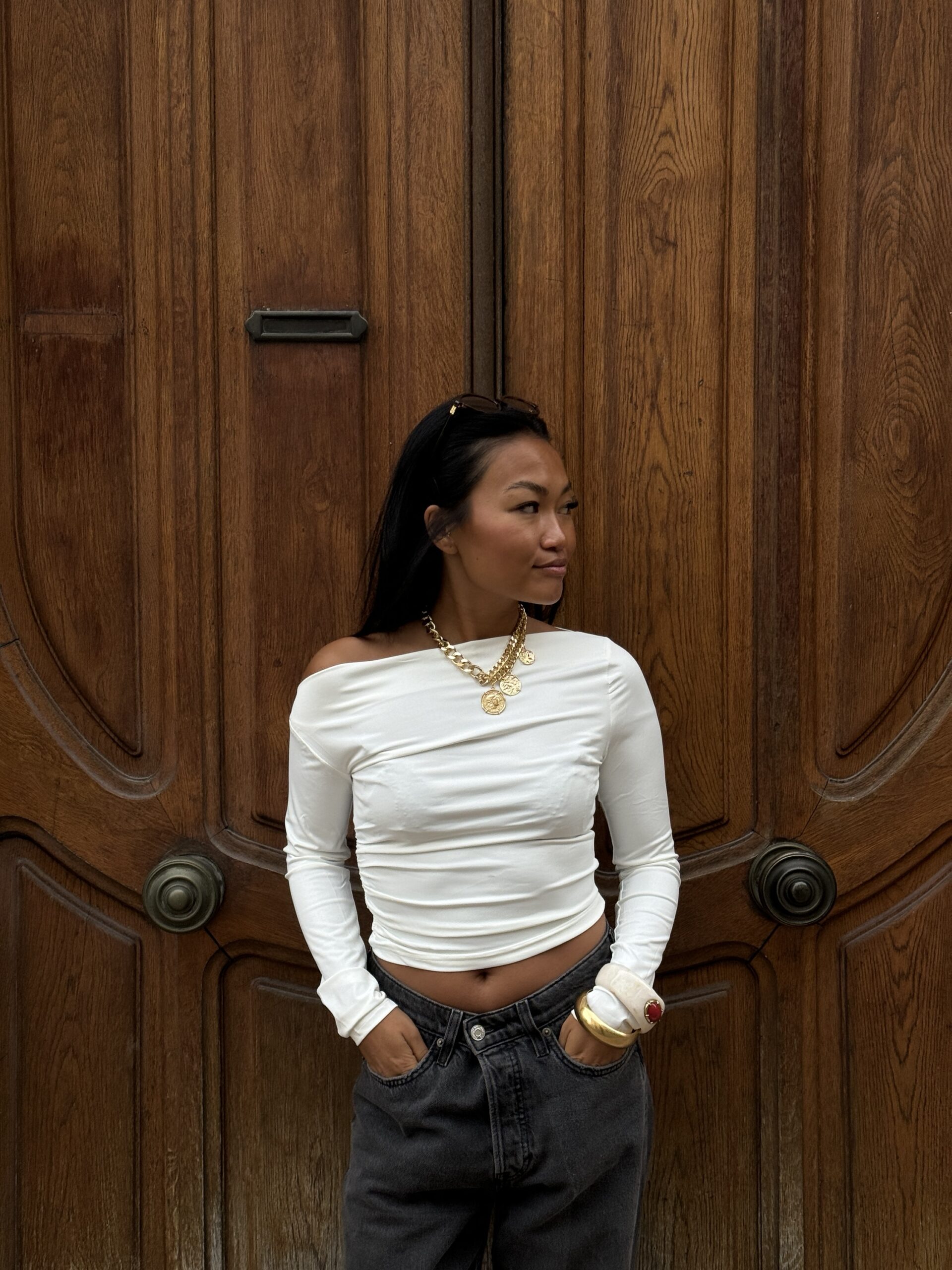 Le top basique manches longues PALMA de Maison Assieuna incarne le parfait équilibre entre minimalisme et élégance. Sa coupe ajustée souligne la silhouette, tandis que son col bateau dévoile subtilement les épaules pour une allure féminine et raffinée.
